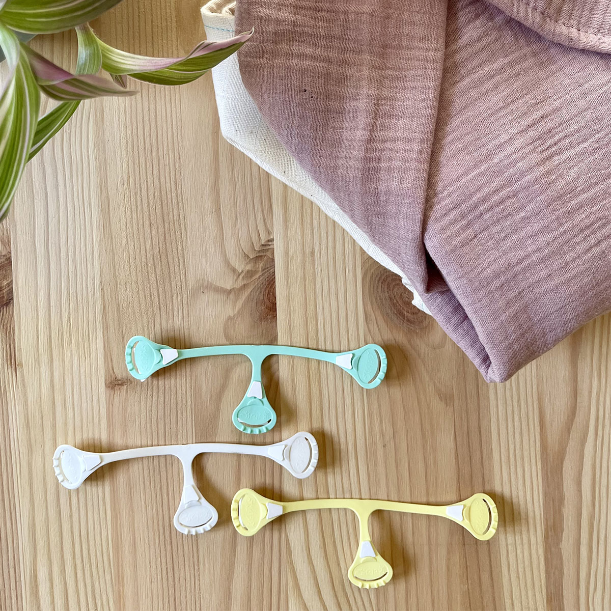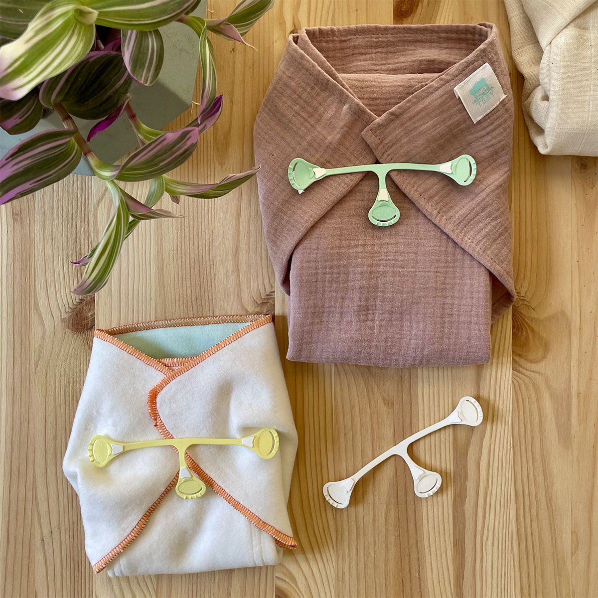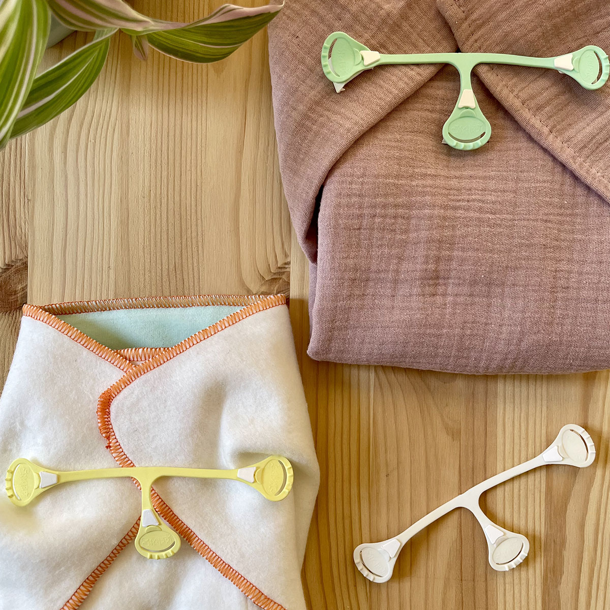 I gancetti sono pratici e funzionali gancetti a tre punte, realizzati in plastica morbida ed elastica. La loro forma a T e i dentini alle estremitร  li rendono ideali per fissare in modo sicuro mussole, prefold, flats e alcuni pannolini fitted che non hanno la chiusura.
