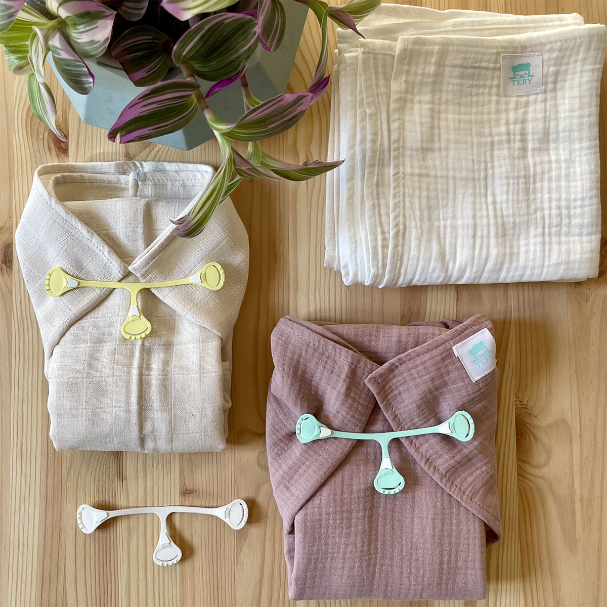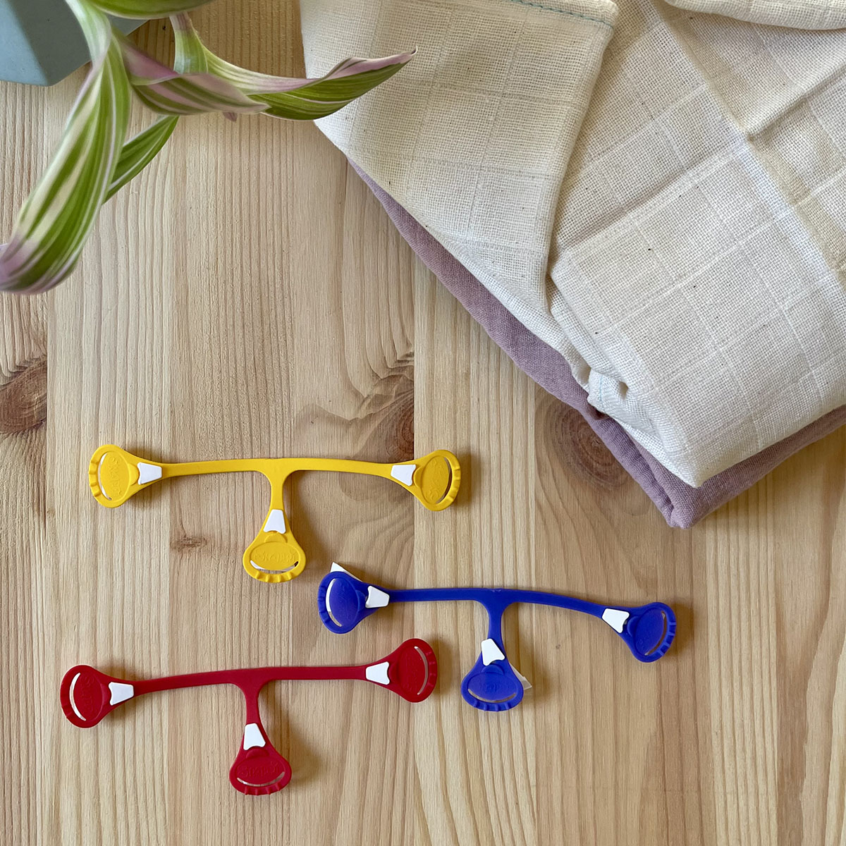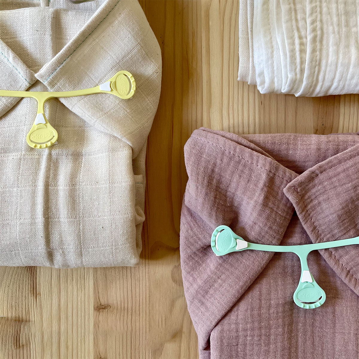 I gancetti sono pratici e funzionali gancetti a tre punte, realizzati in plastica morbida ed elastica. La loro forma a T e i dentini alle estremitร  li rendono ideali per fissare in modo sicuro mussole, prefold, flats e alcuni pannolini fitted che non hanno la chiusura.