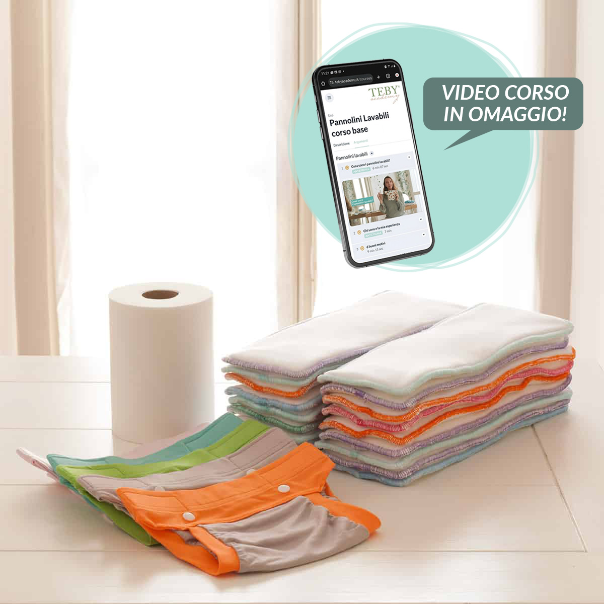 Non ti preoccupare! Acquistando questo Kit avrai in omaggio il nostro speciale Video Corso tutti i segreti dei pannolini lavabili – Base  del valore di 49,00 euro.